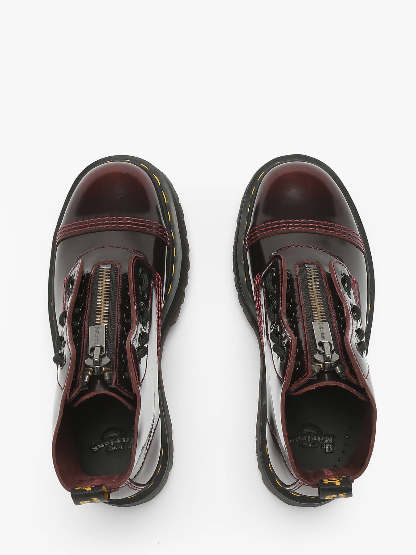 Les boots Sinclair Arcadia de Dr. Martens font leur grand retour dans une version iconique, habillées du rouge Cherry Red signature de la marque. Montées sur une semelle épaisse et texturée qui reflète parfaitement l’ADN Dr. Martens, elles se distinguent par leur fermeture zippée amovible en plus des lacets, offrant plusieurs styles en un seul modèle. Réalisées en cuir Arcadia, un matériau bicolore innovant au fini rub-off, elles révèlent progressivement une sous-couche colorée unique au fil du temps, faisant de chaque paire une pièce singulière. Avec leurs 8 œillets, leurs lignes affirmées et leur caractère audacieux, les Sinclair Arcadia s’imposent comme un symbole de style rebelle et intemporel, idéal pour celles et ceux qui aiment se démarquer.