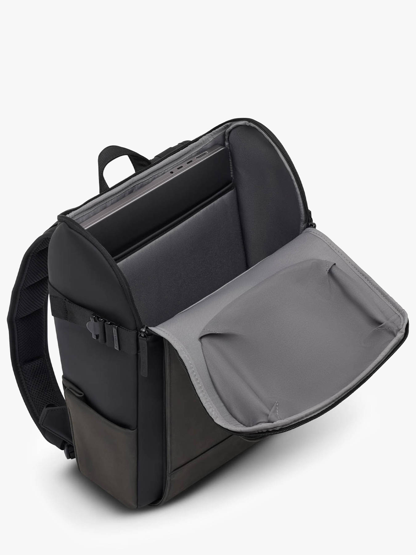 Le sac à dos business KAPTEN AND SON, conçu en P.E.T recyclé, allie fonctionnalité et engagement écologique. Sa fermeture zippée sécurise efficacement vos affaires, tandis que ses multiples poches extérieures – deux à l’avant et une sur le côté – offrent un accès facile à vos indispensables. Les bretelles réglables garantissent un confort optimal lors du porté au dos, et le passant de soutien pour poignée téléscopique permet de fixer le sac sur une valise pour faciliter vos déplacements. À l’intérieur, un compartiment principal spacieux accueille vos documents et accessoires, complété par une poche zippée et une poche dédiée pour ordinateur jusqu’à 16 pouces. Ce sac peut contenir dossiers A4, cahiers et classeurs, idéal pour une organisation parfaite en milieu professionnel. Robuste, éco-responsable et élégant, ce sac à dos est l’allié parfait des journées bien remplies.