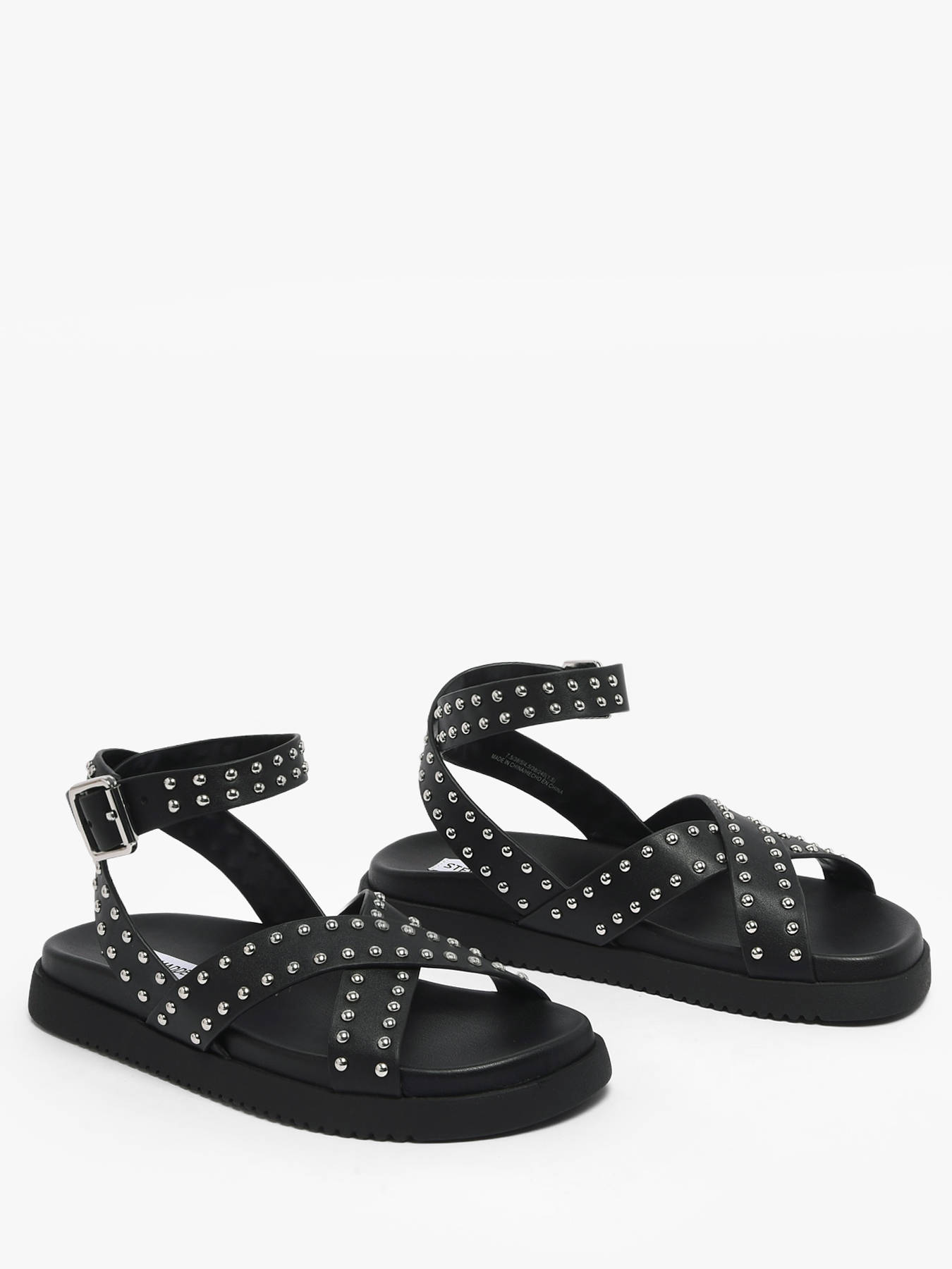 Les sandales My Bestie de Steve Madden allient audace et élégance avec un style contemporain et affirmé. Conçues en cuir lisse noir, elles présentent des brides croisées ornées de studs argentés et une fermeture à boucle réglable à la cheville pour un maintien optimal et un ajustement personnalisé. La doublure en cuir et la semelle intérieure en synthétique assurent un confort durable tout au long de la journée, tandis que la semelle noire épaisse offre stabilité et résistance. Parfaites pour sublimer vos tenues estivales ou apporter une touche rock-chic, ces sandales reflètent l’esprit audacieux, dynamique et résolument individuel de Steve Madden dans un design moderne et sophistiqué.
